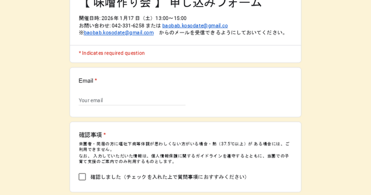 【 味噌作り会 】 申し込みフォーム