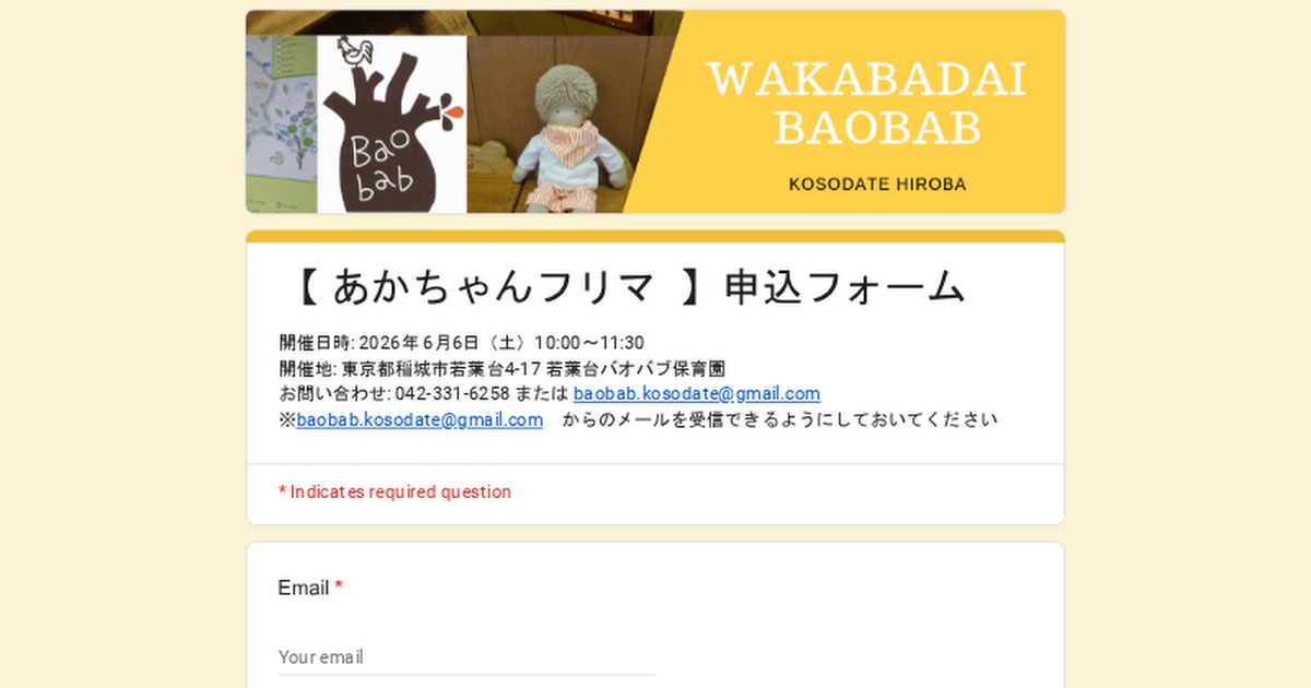 - キャンセルされる場合は、ご連絡ください。(042-331-6258 若葉台バオバブ保育園)