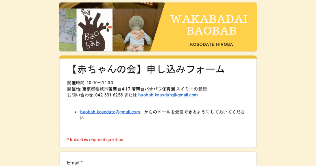 baobab.kosodate@gmail.com からのメールを受信できるようにしてお待ちください。