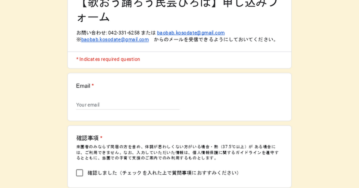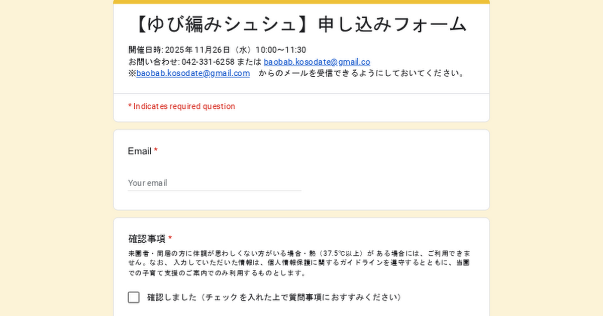 - キャンセルされる場合は、ご連絡ください。(042-331-6258 若葉台バオバブ保育園)