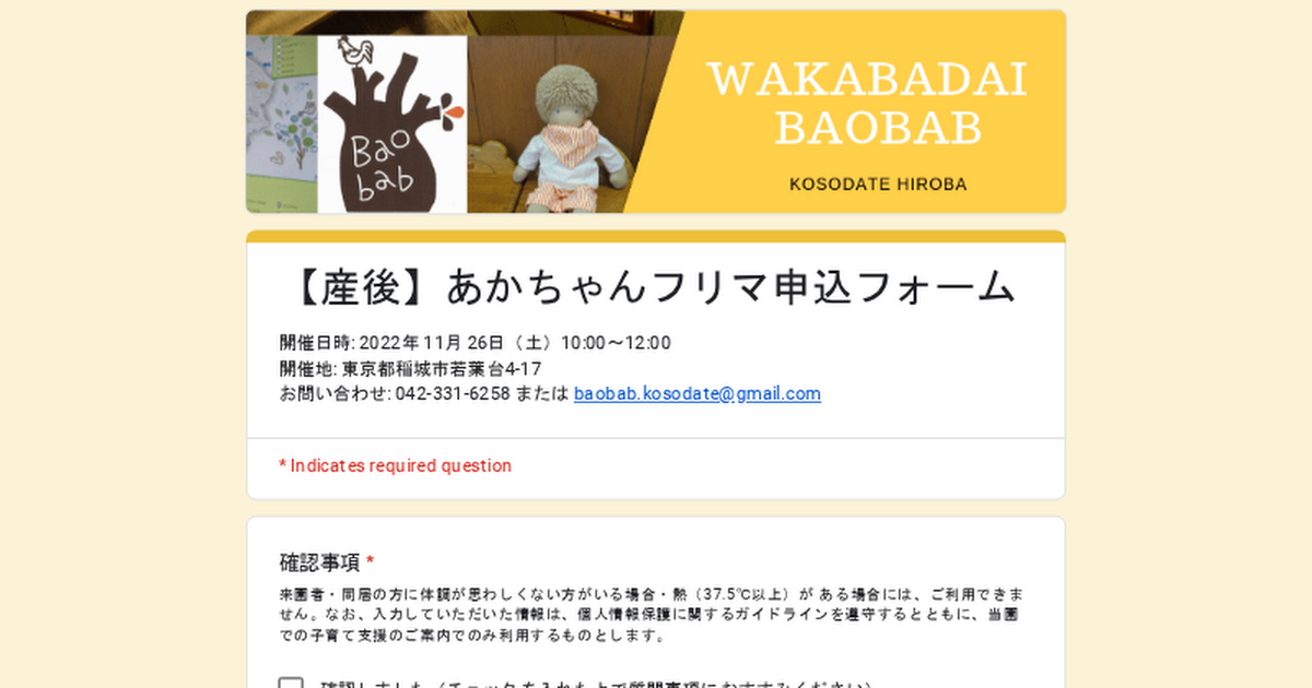 【産後】あかちゃんフリマ申込フォーム